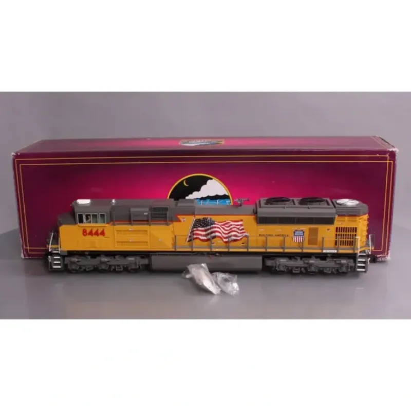 This is a MTH 20-205191 O Union Pacific SD70ACe Diesel Engine with Proto-Sound 3.0 (Hi-Rail Wheels) #8444. This features Intricately Detailed Durable ABS Body, Die-Cast Truck Sides, Pilots and Fuel Tank, Metal Chassis, Metal Handrails and Horn, Moveable Roof Fans, Metal Body Side Grilles, Detachable Snow Plow, (2) Handpainted Engineer Cab Figures, Authentic Paint Scheme, Metal Wheels, Axles and Gears, (2) Remote Controlled Proto-Couplers, O Scale Kadee-Compatible Coupler Mounting Pads, Prototypical Rule 17 Lighting, Directionally Controlled Constant voltage LED Headlights, Lighted LED Cab Interior Light, Illuminated LED Number Boards, Operating LED Ditch Lights, (2) Precision Flywheel-Equipped Motors, Operating ProtoSmoke Diesel Exhaust, Onboard DCC/DCS Decoder, Locomotive Speed Control In Scale MPH Increments, Proto-Scale 3-2 3-Rail/2-Rail Conversion Capable, 1:48 Scale Proportions, Proto-Sound 3.0 With The Digital Command System Featuring: Freight Yard Proto-Effects, Unit Measures:18 1/2 x 2 5/8 x 4, and Operates On O-42 Curves.