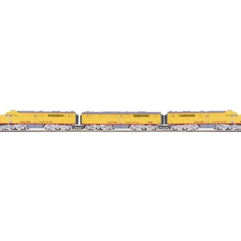 Here is a MTH Union Pacific Alco PA ABA Diesel Set – With PS2. It features two flywheel motors in each A unit, two operating smoke units, die-cast truck sides, pilots and fuel tanks, directionally controlled headlights, illuminated number boards, decorative horn, intricately detailed ABS bodies with an authentic paint scheme, lighted interiors and two engineer figures in each A unit.