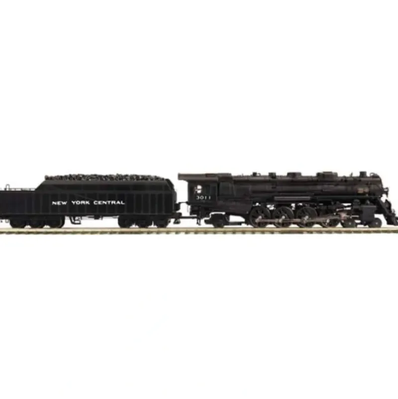 Here is an MTH 20-3372-1 New York Central 4-8-2 L-3a Mohawk Steam Engine w/Proto-Sound 2.0 (Hi-Rail Wheels). This locomotive features a die-cast tender and boiler, die-cast metal chassis, authentic paint scheme, metal wheels and axles, constant voltage headlight, die-cast trucksides, real coal load, precision flywheel equipped motor, remote controlled ProtoCoupler, engineer and fireman figures, operating firebox glow, metal handrails, a decorative bell, decorative metal whistle, operating marker lights, lighted cab interior, operating tender back up light, locomotive speed control in scale MPH increments, synchronized puffing ProtoSmoke system, wireless drawbar, ProtoSound 2.0 with the Digital Command System featuring: Freight Yard ProtoEffects, and it operates on O-54 curves.