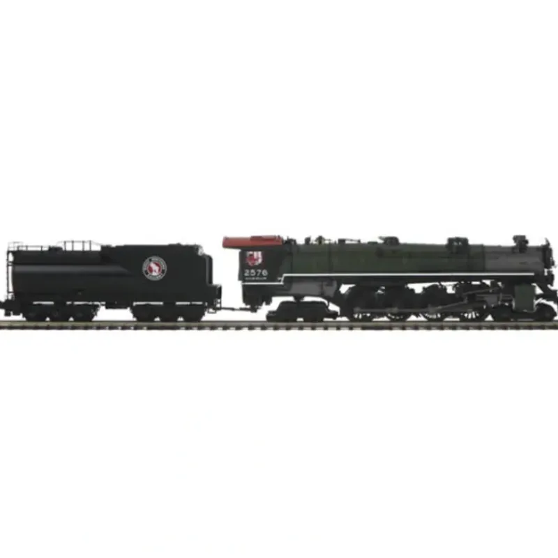 This is MTH 20-3501-2 O Scale 4-8-4/ wPS3, GN/Glacier Park #2584. 4-8-4 steam locomotive with Proto-Sound 3.0, Great Northern. Cab number: 2576. The first 4-8-4 Northerns to appear on the Great Northern did so in 1929 after arriving from the Baldwin Locomotive works. Designated Class S, the locomotives were purchased by the Great Northern in two models, S-1 and S-2. Designated for fast passenger work, the S-1s featured 73 drivers but carried with them a reputation of being hard on the rails.