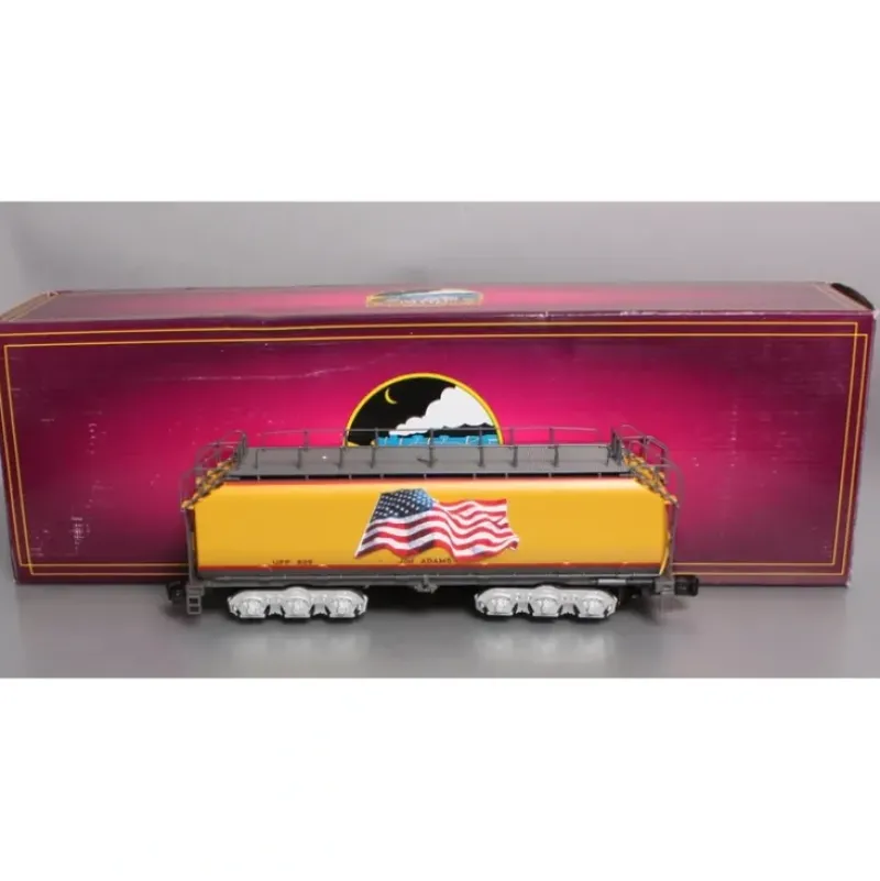 This is a MTH 203558 O Union Pacific Jim Adams Auxiliary Water Tender I – 3-Rail with Hi-Rail Wheels #809. This features Die-Cast Metal Body, Stamped Metal Floors, Metal Wheels and Axles, Detailed 4-Wheel Trucks, Fast-Angle Wheel Sets, Needle-Point Axles, Separate Metal Handrails, 1:48 Scale Dimensions, Unit Measures:10 1/2 x 2 1/2 x 3 1/4, and Operates On O-42 Curves.