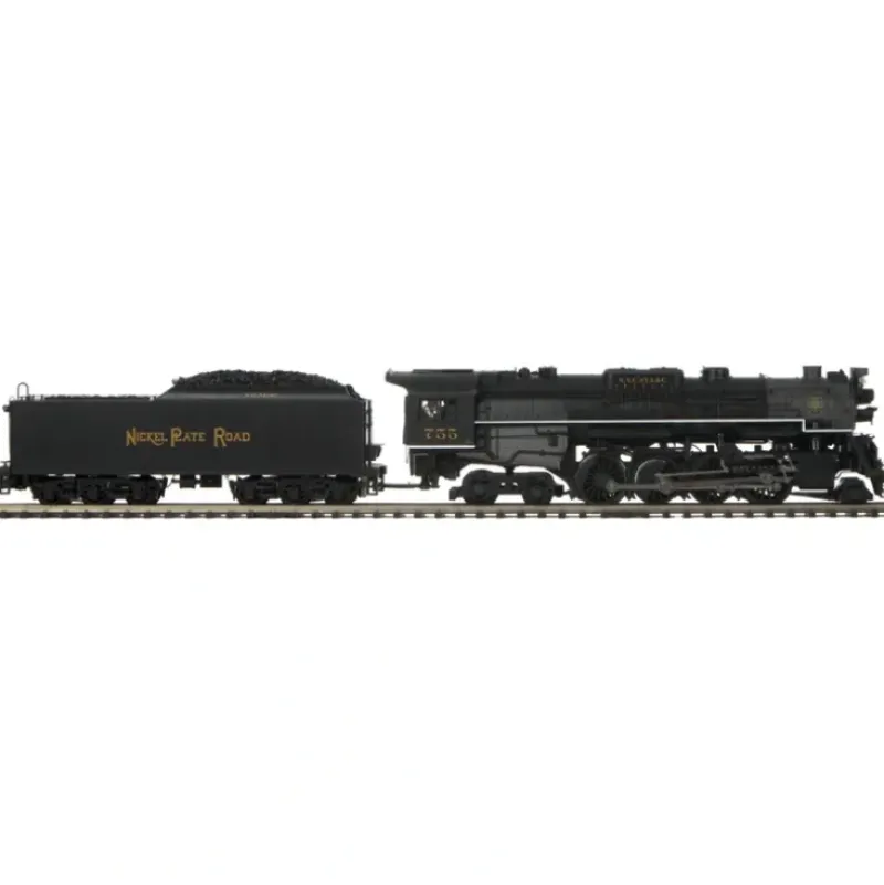 This is a MTH 20-3567-1 O Hi-Rail 2-8-4 Berkshire w/PS3, NKP #755. Die-Cast Boiler and Chassis, Die-Cast Tender Body, Authentic Paint Scheme, Real Tender Coal Load, Die-Cast Locomotive Trucks, Engineer and Fireman Figures, Metal Handrails and Decorative Bell, Metal Wheels and Axles, Remote Controlled Proto-Coupler, Kadee Coupler Mounting Pads, Prototypical Rule 17 Lighting, Constant Voltage Headlight, Operating Firebox Glow, Operating Marker Lights, Operating Numberboard Lights, Lighted Cab Interior, Operating Tender Back-up Light, Precision Flywheel Equipped Motor, Synchronized Puffing ProtoSmoke System, Locomotive Speed Control In Scale MPH Increments, Wireless Drawbar, 1:48 Scale Proportions, Onboard DCC Receiver, Proto-Scale 3-2 3-Rail/2-Rail Conversion Capable, Proto-Sound 3.0 With The Digital Command System Featuring: Quillable Whistle With Passenger Station Proto-Effects, Unit Measures:26 x 2 1/2 x 3 7/8, Operates On O-54 CurvesSteam DCC Features, Headlight/Tail light, Bell, Whistle, Start-up/Shut-down, Passenger Station/Freight Yard Sounds, All Other Lights (On/Off), Master Volume, Front Coupler, Rear Coupler, Forward Signal, Reverse Signal, Grade Crossing, Smoke On/Off, Idle Sequence 3, Smoke Volume, Idle Sequence 2, Idle Sequence 1, Extended Start-up, Extended Shut-down, One Shot Doppler, Coupler Slack, Coupler Close, Single Horn Blast, Engine Sounds, Brake Sounds, Feature Reset, Cab Chatter, Labor Chuff, Drift Chuff.