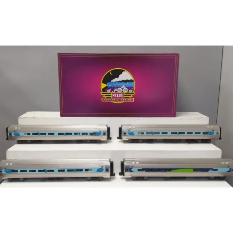 Here are some MTH 20-64021 O Amtrak Amfleet Passenger 4-Car Set.