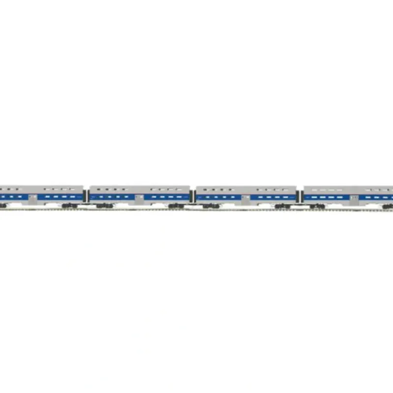 This is a MTH 20-65189 Amtrak Bi-Level 4-Car Passenger Set. Car numbers: Command car – 9622, Coaches – 9606, 9615 & 9617. It is hard to match the excitement and beauty of a long, sleek passenger train speeding down the rails. Our elegant scale streamlined and heavyweight Madison cars will bring exactly the right, realistic look to your passenger service.
