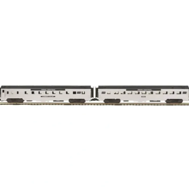 This is MTH 20-66209 O 70′ Ribbed Sleeper/Diner, PC. 2-car 70′ ABS sleeper/diner passenger set (ribbed), Penn Central. Car names/numbers: Sleeper – 4265 Caribou Valley; Diner – 4552. It is hard to match the excitement and beauty of a long, sleek passenger