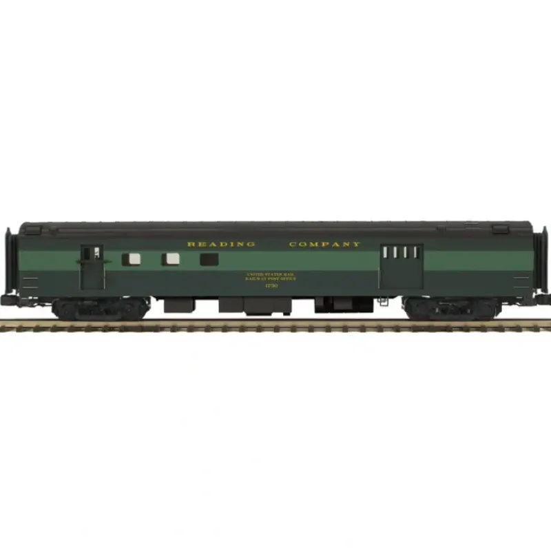This is MTH 20-68242 O 70′ Smooth RPO, RDG. 70′ ABS RPO passenger car (smooth), Reading. Car number: 1730. Beginning with the Burlingtons Pioneer Zephyr of 1934, gleaming Budd-built trains, constructed almost entirely of stainless, helped define the look of the streamlined era to the American public even on railroads like the Pennsylvania and Norfolk and Western that painted over the stainless with company colors. While other car builders such as Pullman countered with stainless-sheathed steel cars like the Southern Pacifics Daylights, they were forced to use rivets rather than welding for construction. In later years, the result was that Budd cars lasted almost indefinitely, while the stainless-sheathed imitators were plagued with out-of-sight rusting under the sheathing. The majority of lightweights were 8085 long, which scales out to about 21 in O gauge. Many O gauge modelers, however, find cars of this length impractical, as they require large curves and create long trains that can overwhelm a typical-sized layout. For those reasons, our Premier lightweights are about 70 scale feet in length reproducing the look and feel of prototype streamliners in a model that will round O-42 curves with ease and look at home on most scale-detailed O gauge layouts.It is hard to match the excitement and beauty of a long, sleek passenger train speeding down the rails. M.T.H.’s Premier Line scale streamlined passenger cars and sets will bring exactly the right, realistic look to your passenger consists. No other manufacturer matches the quality and value found inside an M.T.H. Premier Line passenger car. Using an intricately detailed, yet durable ABS body atop smooth rolling die-cast metal trucks results in a lightweight car that won’t bog down a locomotive struggling to pull heavy aluminum passenger cars. What’s more, each Premier Line passenger car features detailed car interiors and overhead lighting for a realistic and authentic appearance. Its key features are: Durable ABS intricately detailed bodies Metal wheels and axles Overhead interior lighting Die-cast 4-wheel trucks Operating die-cast metal couplers Colorful, attractive paint schemes End-of-car diaphragms Fast-angle wheel sets Needle-point axles Detailed car interiors 1:48 scale dimensions Detailed car undercarriage Separate metal handrails Unit measures: 19 x 2 7/16 x 3 1/2 Operates on O-42 curves