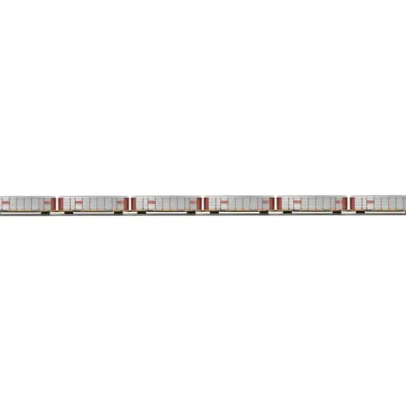 This is MTH 20-90600 6-Car Corrugated Auto Carrier set, Conrail. Car numbers: TTGX 254181, TTGX 157279, TTGX 159043, TTGX 160294, TTGX 253967, TTGX 254476. MTH Premier O Scale freight car sets are the perfect complement to many of the locomotives featured earlier in this catalog. They also go great with any manufacturer’s scale proportioned O Gauge locomotives.