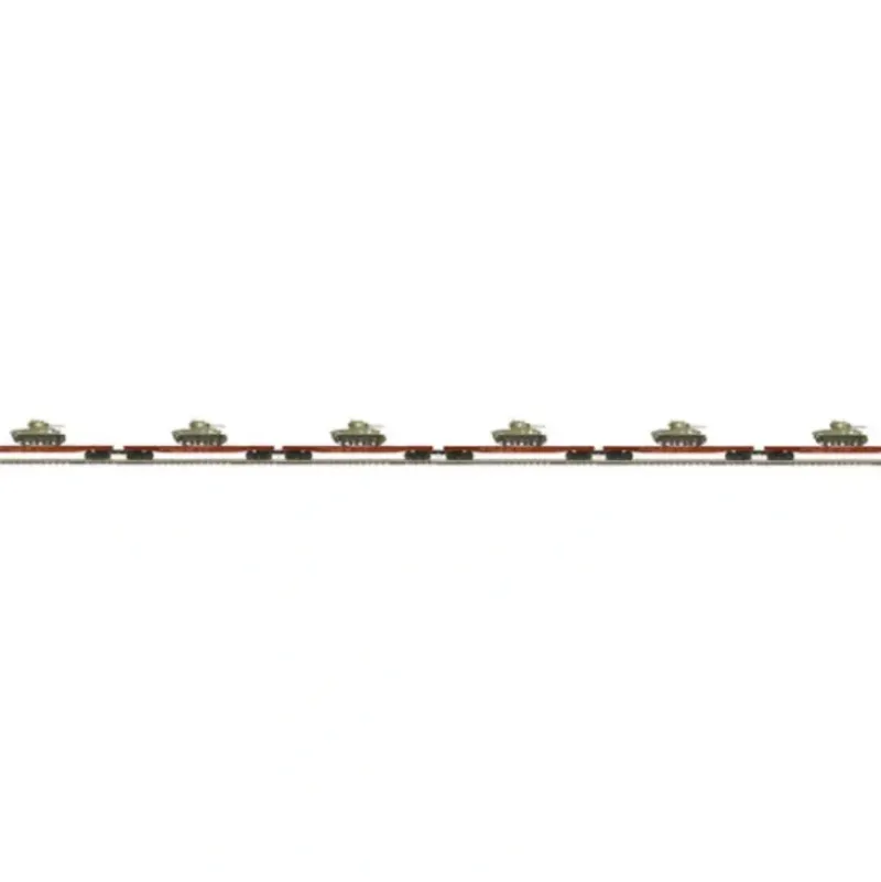 This is MTH 20-90695 O PRR 6pk Flatcars w/M4 Sherman Tanks. 6-car flat car with one M4 Sherman tank, Pennsylvania. Car numbers: 473277, 473272, 473265, 473160, 473258, 473254. MTH Premier O Scale freight car sets are the perfect complement to many of the locomotives featured earlier in this catalog. They also go great with any manufacturer’s scale proportioned O Gauge locomotives.
