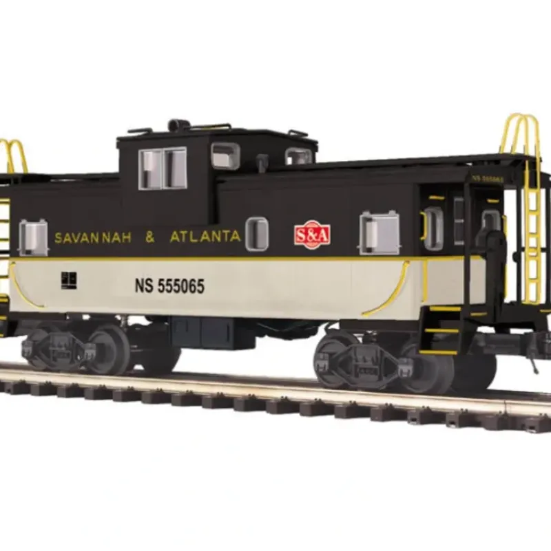 This is MTH 20-91416 Ext Vsn Caboose SA. Extended vision caboose, Savannah & Atlanta (NS Heritage). Car number: 555065. This car features die-cast metal sprung trucks, operating knuckle couplers, metal wheels and axles.