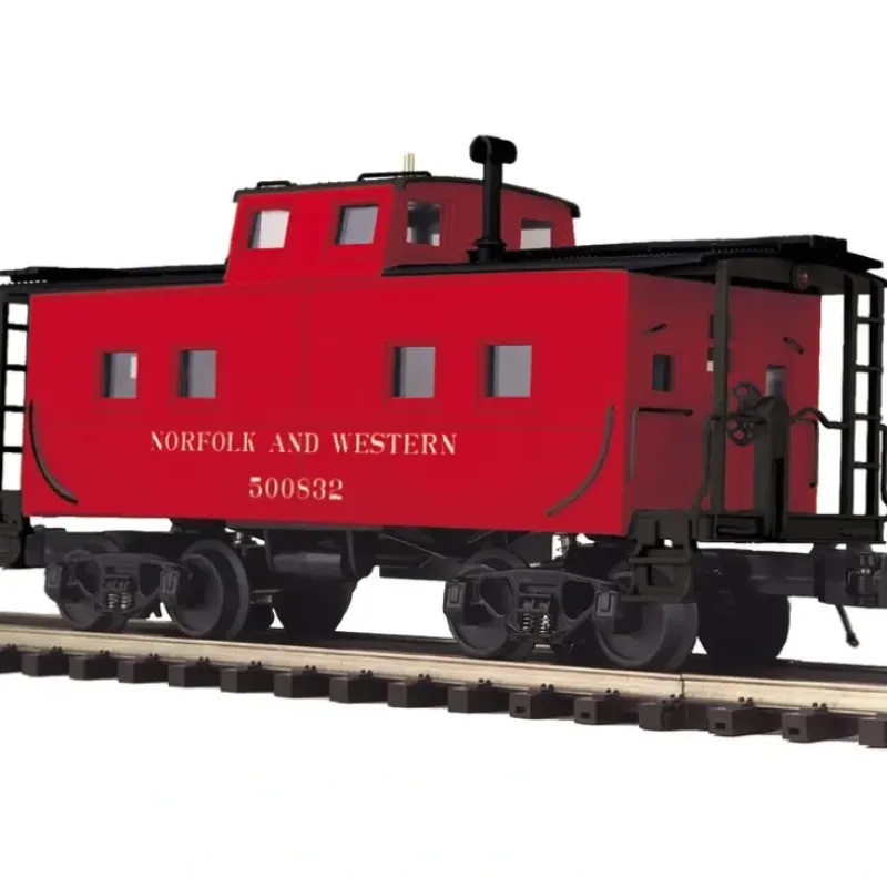 Here is an MTH 2091428 O Gauge Norfolk & Western Center Cupola Steel Caboose. This car features die-cast metal sprung trucks, operating knuckle couplers, metal wheels and axles.