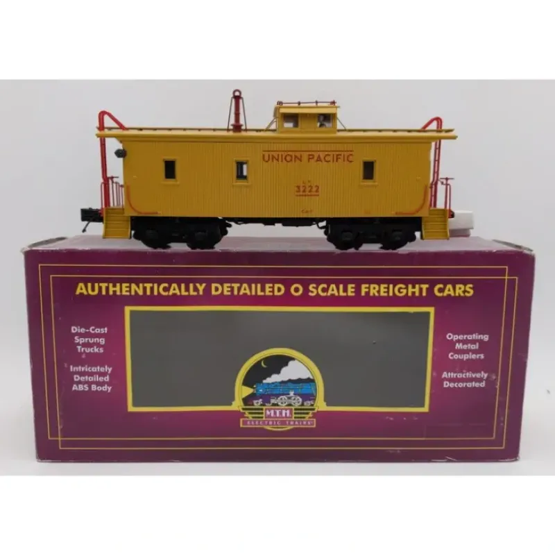 This is a MTH 2091447 O Scale Class CA-1 Wood Cupola Caboose – 3-Rail – Ready to Run – Premier Union Pacific (Armour Yellow, red).