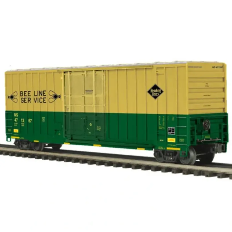 This is MTH 20-93570 50′ HC Boxcar NS/RDG. 50′ high cube box car, Reading (NS Heritage). Numbers: 471267, 471298. With an interior height of about 13 feet 2 feet more than a standard box car this car is known as a hi-roof or high cube car for its