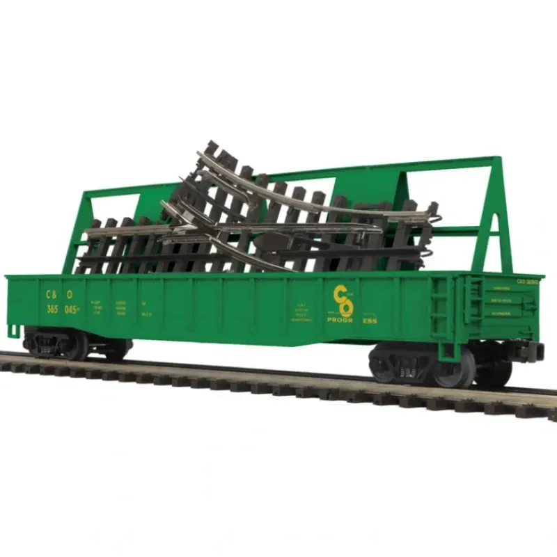 This is a MTH 20-9513-7 O Chesapeake & Ohio Gondola Car with ScaleTrax O-31 Switch #365045/365068. Product Features: Intricately Detailed Durable ABS Body, Metal Wheels and Axles, Die-Cast 4-Wheel Trucks, Operating Die-Cast Metal Couplers, Colorful, Attractive Paint Schemes, Fast-Angle Wheel Sets, Needle-Point Axles, 1:48 Scale Dimensions, Removable ScaleTrax O-31 Switch, O Scale Kadee Compatible Coupler Mounting Pads, Unit Measures:14 5/8 x 2 5/8 x 2 9/16, Operates On O-31 Curves.
