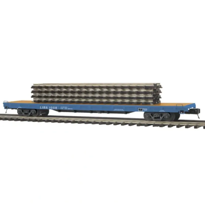 This is an MTH 2095146 O Scale Long Island 60′ Flat Car with (4) ScaleTrax 10 Straights No.1008, 1006. Product Features:Intricately Detailed Durable ABS Body, Metal Wheels and Axles, Die-Cast 4-Wheel Trucks, Operating Die-Cast Metal Couplers, Colorful, Attractive Paint Schemes, Fast-Angle Wheel Sets, Needle-Point Axles, 1:48 Scale Dimensions, (4) Removable ScaleTrax Track Sections, O Scale Kadee Compatible Coupler Moutning Pads, Unit Measures:16 x 2 1/2 x 4 1/2, Operates On O-42 Curves.
