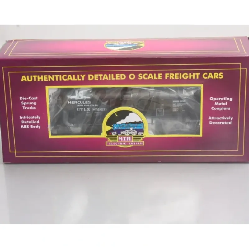 Here is an MTH 20-96217 Hercules 8,000 Gallon Tank Car #85920. This car features die-cast metal sprung trucks, operating knuckle couplers, metal wheels and axles.