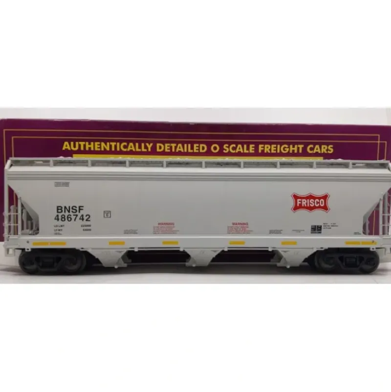 Here is a MTH 20-97797 O Gauge BNSF 3-Bay Centerflow Hopper #486742. This product features a plastic construction with metal wheels and operating knuckle couplers.