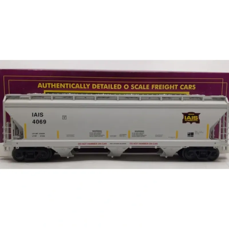 Here is a MTH 20-97800 O Gauge Iowa Interstate 3-Bay Centerflow Hopper #4069. This product features a plastic construction with metal wheels and operating knuckle couplers.