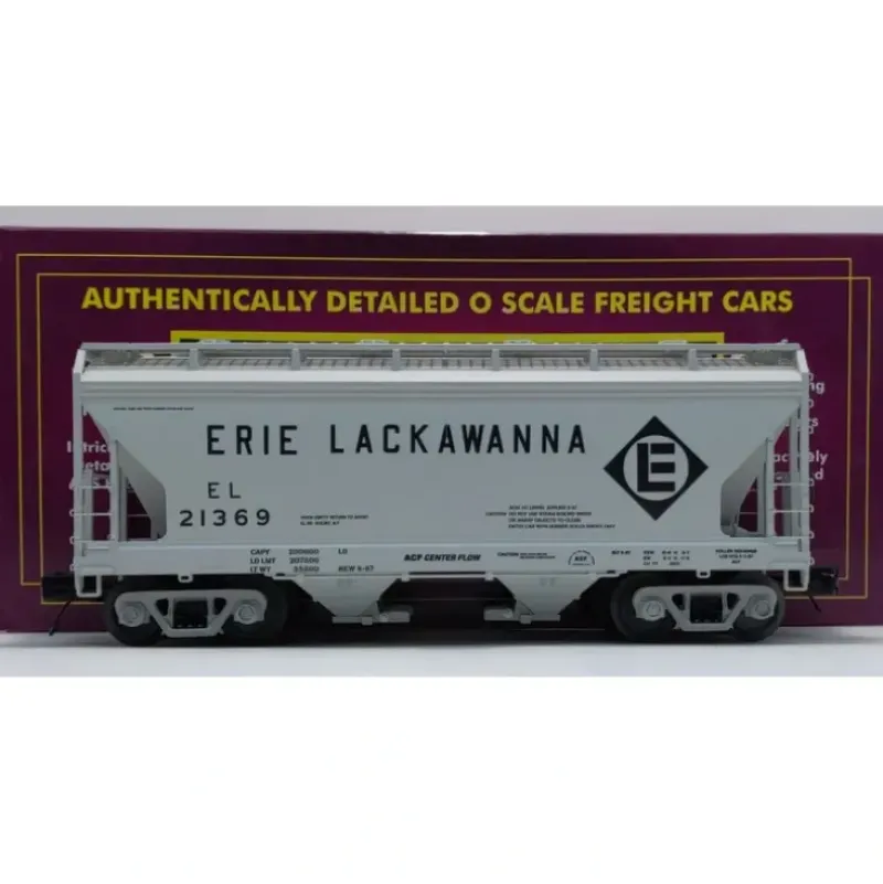 This is MTH 20-97812 O 2-Bay Centerflow Hopper, EL. Erie Lackawanna, numbers: 21360, 21369. MTH Premier O Scale freight cars are the perfect complement to any manufacturer’s scale proportioned O Gauge locomotives. Whether you prefer to purchase cars separately or assemble a unit train, MTH Premier Rolling Stock has the cars for you in a variety of car types and paint schemes.