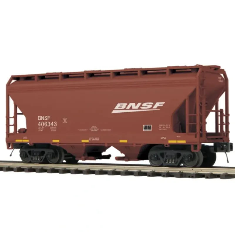 This is a MTH 2097826 O Burlington Northern Sante Fe Railway 2-Bay Centerflow Hopper #406343. This features Intricately Detailed, Durable ABS Body, Metal Wheels and Axles, Die-Cast 4-Wheel Trucks, Fast-Angle Wheel Sets, Needle-Point Axles, (2) Operating Die-Cast Metal Couplers, O Scale Kadee-Compatible Coupler Mounting Pads, Detailed Brake Wheel, Separate Metal Handrails, 1:48 Scale Dimensions, Unit Measures: 10 1/8 x 2 11/16 x 3 3/4, and Operates On O-31 Curves.