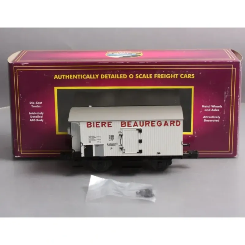Here is a MTH 20-99001 O Biere Beauregard European BierwagenReefer/Hi-Rail. European bierwageneefer car (hi-rail wheels) – Biere Beauregard. MTH Premier O Scale freight cars are the perfect complement to any manufacturers scale proportioned O Gauge locomotives. Whether you prefer to purchase cars separately or assemble a unit train, MTH Premier Rolling Stock has the cars for you in a variety of car types and paint schemes.