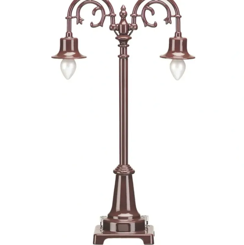 Here is an MTH 30-1066 Standard Gauge #54 Die-Cast Brown Street Lamp Set (Pack of 2). These are 1920s style lamps that run on AC or DC power. These are reproductions of the Lionel 54 lamps that were originally manufacturer form 1929 to 1935. Each lamp is about 9 inches tall.