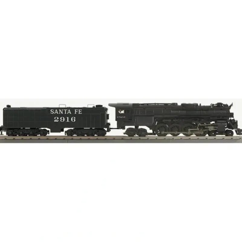 This is MTH 30-1604-1 ATSF 4-8-4 IMPERIAL NORTH. 4-8-4 Imperial Northern steam engine with Proto-Sound 3.0, Santa Fe. Cab number: 2916. The heaviest straight passenger locomotive ever produced, the famous Santa Fe 4-8-4 Northerns epitomized steam power. The steeply graded western lines of the Santa Fe required a locomotive with enormous power, and the Northern was the answer.