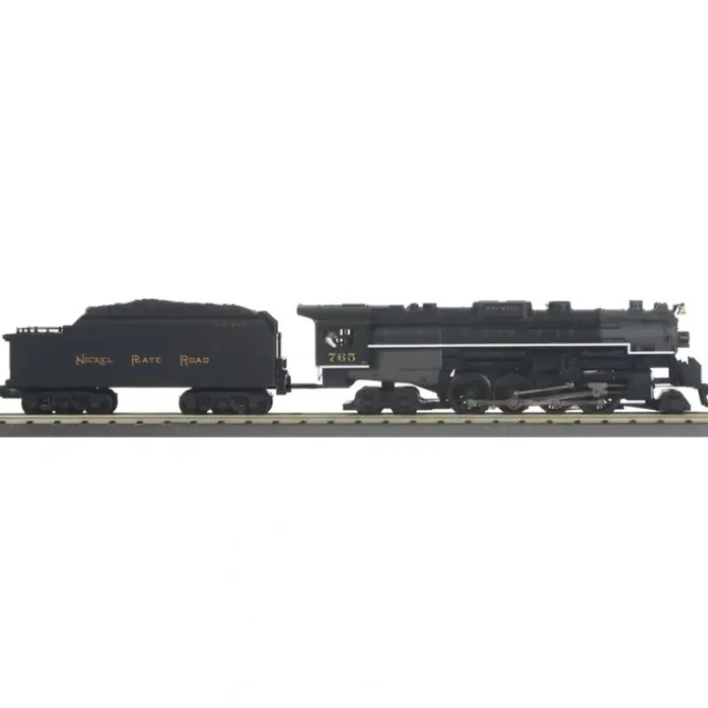 This is an MTH 30-1629-1 O Scale Nickel Plate Road 2-8-4 Imperial Berkshire Steam Engine with Proto-Sound 3.0 Cab No. 765. Product Features:Die-Cast Boiler and Chassis, Die-Cast Tender Body, Authentic Paint Scheme, Real Coal Load in Tender, Die-Cast Locomotive and Tender Trucks, Engineer and Fireman Figures, Metal Handrails and Bell, Metal Wheels and Axles, Remote Controlled Proto-Coupler, Prototypical Rule 17 Lighting, Operating Firebox Glow, Tender Backup Light, Tender Truck Safety Chains, Illuminated Engine Class Lights, Separately Added Metal Grab Irons, Legible Builder’s Plates, Cab Interior Light, Painted Cab Backhead Gauges, Precision Flywheel-Equipped Motor, Synchronized Puffing ProtoSmoke System, Locomotive Speed Control In Scale MPH Increments, Wireless Drawbar, Onboard DCC Receiver, Proto-Sound 3.0 With The Digital Command System Featuring: Passenger Station Proto-Effects, Unit Measures:22 1/2 x 2 1/2 x 3 3/8, Operates On O-31 Curves Steam DCC Features, Headlight/Tail light, Bell, Whistle, Start-up/Shut-down, Passenger Station/Freight Yard Sounds, All Other Lights (On/Off), Master Volume, Front Coupler, Rear Coupler, Forward Signal, Reverse Signal, Grade Crossing, Smoke On/Off, Smoke Volume, Idle Sequence 3, Idle Sequence 2, Idle Sequence 1, Extended Start-up, Extended Shut-down, One Shot Doppler, Coupler Slack, Coupler Close, Engine Sounds, Single Horn Blast, Brake Sounds, Cab Chatter, Feature Reset, Labor Chuff, Drift Chuff.