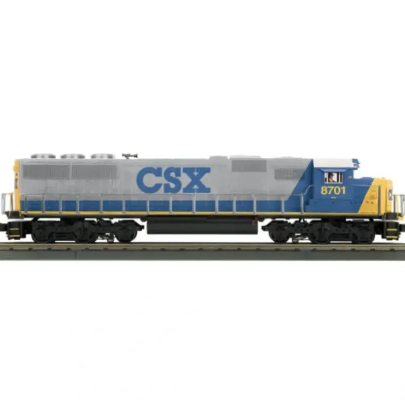 This is MTH 30-20144-1 SD60 Loco w/PS3 CSX. SD60 diesel engine with Proto-Sound 3.0, CSX. Cab number: 8701. Introduced in the mid-1980s, the SD60 and its four-axle sister, the GP60, were the first EMD diesels to incorporate computer technology and onboard diagnostics to aid the engineer. Under the hood was a new 16-cylinder model 710 prime mover rated at 3800 horsepower. While the SD60 looked almost identical to the SD50 introduced just four years earlier, under the hood virtually everything had changed. Problems with the SD50 had led EMD to a total redesign that introduced the firm’s third generation of diesel locomotives.