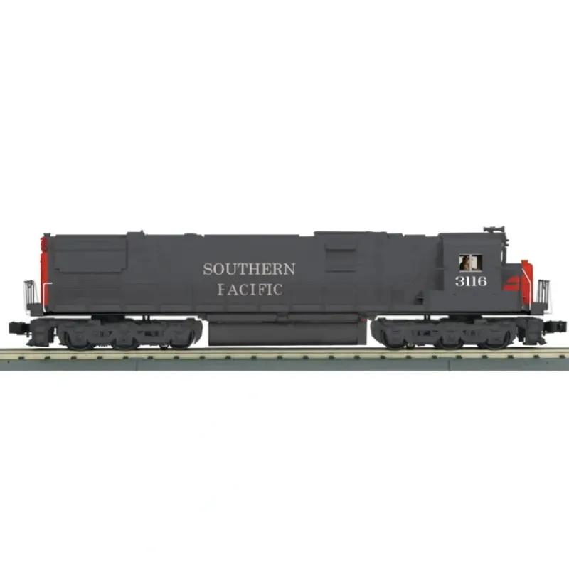 This is a MTH 30202451 O Southern Pacific Scale Alco C628 – 3-Rail w/Proto-Sound 3.0 – RailKing #3116. Features: Intricately Detailed ABS Body, Die-Cast Truck Sides, Pilots and Fuel Tank, Metal Chassis, Metal Handrails and Decorative Horn, (2) Engineer Cab Figures, Authentic Paint Scheme, Metal Wheels, Axles and Gears, (2) Remote Controlled Proto-Couplers, Prototypical Rule 17 Lighting, Directionally Controlled Constant voltage LED Headlights, Lighted Cab Interior, Illuminated Number Boards, (2) Precision Flywheel Equipped Motors, Operating Smoke Unit, Onboard DCC Receiver, Locomotive Speed Control In Scale MPH Increments, 1:48 Scale Proportions, Proto-Sound 3.0 With The Digital Command System Featuring: Freight Yard Proto-Effects, Unit Measures:18 x 2 1/2 x 3 3/4, Operates On O-31 Curves Diesel DCC Features, Headlight/Taillight, Bell, Horn, Start-up/Shut-down, Passenger Station/Freight Yard Announcements, Lights (except head/tail), Master Volume, Front Coupler, Rear Coupler, Forward Signal, Reverse Signal, Grade Crossing, Idle Sequence 3, Idle Sequence 2, Idle Sequence 1, Extended Start-up, Extended Shut-down, Rev Up, Rev Down, One Shot Doppler, Coupler Slack, Coupler Close, Single Horn Blast, Engine Sounds, Brake Sounds, Cab Chatter, Feature Reset, Smoke On/Off, Smoke Volume.