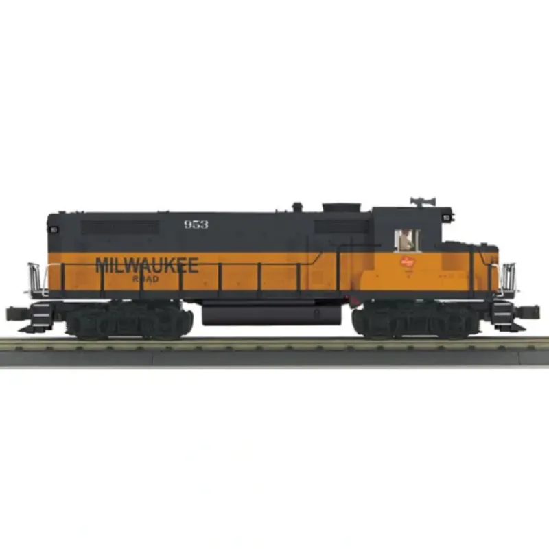 This is an MTH 30202661 O Scale Milwaukee Road GP-20 Diesel Engine With Proto-Sound 3.0 Cab No. 953. Product Features:Intricately Detailed ABS Body, Die-Cast Truck Sides, Pilots and Fuel Tank, Metal Chassis, Metal Handrails and Decorative Horn, (2) Engineer Cab Figures, Metal Wheels, Axles and Gears, (2) Remote Controlled Proto-Couplers, Prototypical Rule 17 Lighting, Directionally Controlled Constant Voltage LED Headlight, Lighted Cab Interior, Illuminated Number Boards, (2) Precision Flywheel Equipped Motors, Operating Smoke Unit, Onboard DCC Receiver, 1:48 Scale Proportions, Proto-Sound 3.0 With The Digital Command System Featuring: Freight Yard Proto-Effects, Unit Measures:14 7/8 x 2 3/4 x 4, Operates On O-31 Curves Diesel DCC Features, Headlight/Taillight, Bell, Horn, Start-up/Shut-down, Passenger Station/Freight Yard Announcements, Lights (except head/tail), Master Volume, Front Coupler, Rear Coupler, Forward Signal, Reverse Signal, Grade Crossing, Idle Sequence 3, Idle Sequence 2, Idle Sequence 1, Extended Start-up, Extended Shut-down, Rev Up, Rev Down, One Shot Doppler, Coupler Slack, Coupler Close, Single Horn Blast, Engine Sounds, Brake Sounds, Cab Chatter, Feature Reset, Smoke On/Off, Smoke Volume.