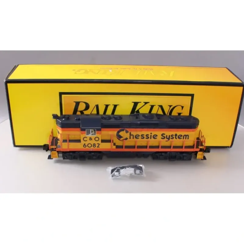 This is an MTH 30202703 O Scale Chessie GP9 Diesel Engine (Non-Powered) Engine No. 6082. Product Features:Die-Cast Truck Sides, Pilots and Fuel Tank, Colorful Paint Scheme, Metal Chassis, Metal Handrails and Decorative Horn, Intricately Detailed ABS Body, Metal Wheels and Axles, (2) Operating Metal Couplers, 1:48 Scale Proportions, Unit Measures:14 3/4 x 2 1/2 x 3 3/4, Operates On O-31 Curves.