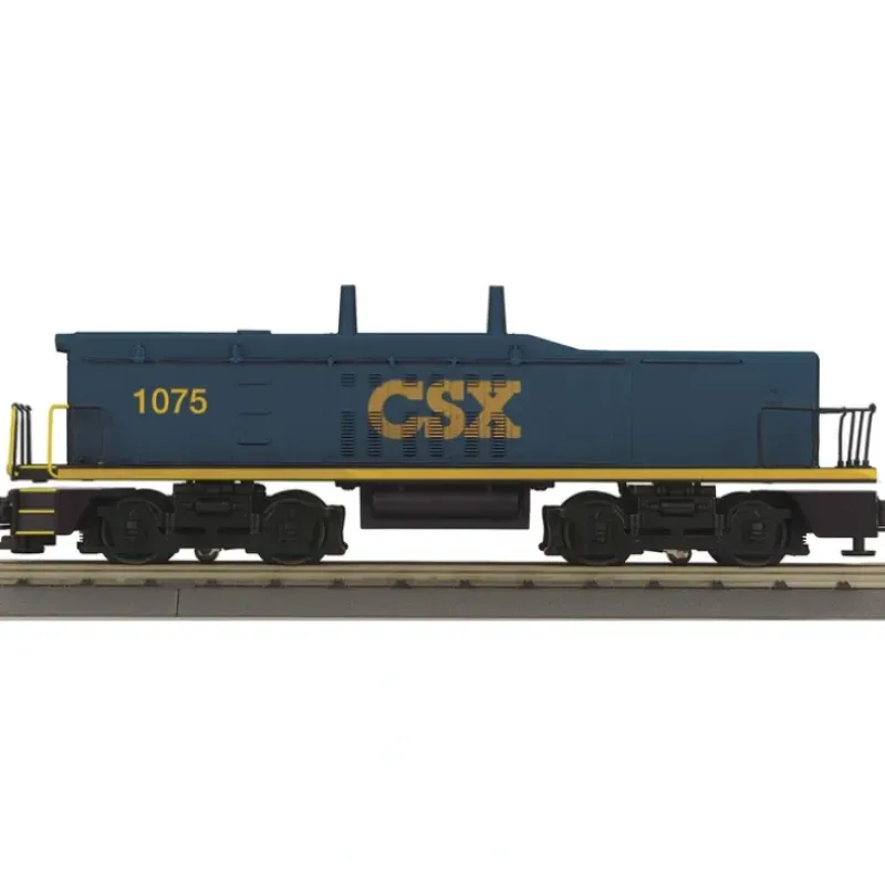 This is a MTH 30202843 O CSX SW-9 Switcher Diesel Engine Calf (Non-Powered) #1075. This features Intricately Detailed ABS Body, Die-Cast Truck Sides, Pilots and Fuel Tank, Metal Chassis, 1:48 Scale Proportions, Metal Wheels and Axles, (2) Operating Metal Couplers, Unit Measures:12 x 2 1/2 x 3 1/2, and Operates On O-27 Curves.