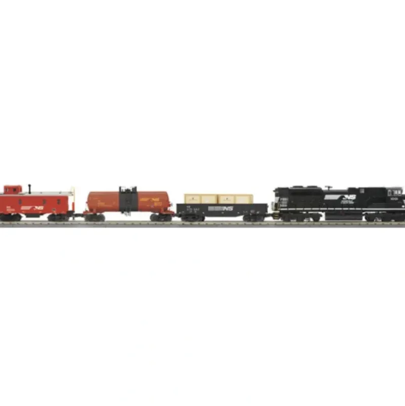 These deluxe freight sets are headed by the most modern and greenest power on American rails today. Designed to comply with new Environmental Protection Agency regulations, the Electro-Motive Diesel SD70ACe locomotive features a 16-cylinder engine that puts out 4300 horsepower – 10% more power than its predecessor with 50% less emissions. In addition to the diesel motor, virtually every element of the SD70ACe has been re-thought to create a 21st century locomotive. Ergonomics were a prime consideration. The engine’s angular nose offers the crew far better visibility than most other locomotives, and the cab is comfortable for engineers of almost any size. Digital screens provide a range of information on what is happening both inside the locomotive and out on the road. The cab easily accommodates a crew of three, and there is, of course, a cupholder for the engineer.Our superbly detailed, top-of-the-line RailKing Imperial model of this modern freight mover features a full range of locomotive sounds recorded from an actual SD70ACe. Outfitted with twin powerful flywheel-equipped motors, all-metal wheels and gears, and our revolutionary Proto-Speed Control, our SD70ACe will haul long freights at any speed from a crawl to full throttle. Remotely activated front and rear Proto-Couplers allow you to pick up and drop off freight wherever you like. Additional Imperial features on the SD70ACe include operating diesel exhaust smoke and flashing ditch lights. With the DCS Remote Commander handheld controller included in each set, you can activate all of these features anywhere on your layout.Model the ground-shaking, high horsepower drama of modern railroading with these RailKing Imperial freight sets