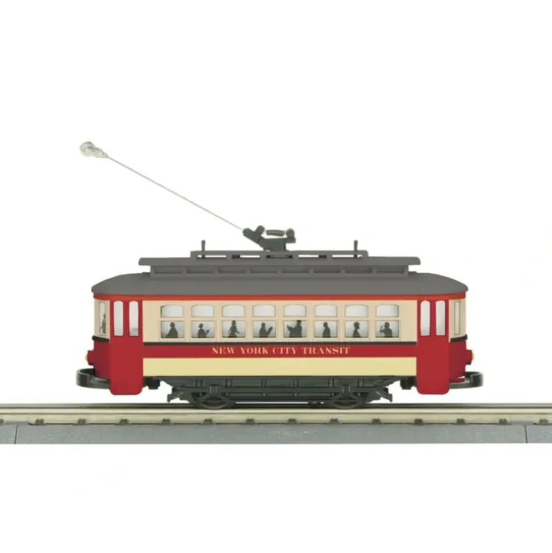 This is a MTH 305139 O New York City Transit Bump-n-Go Trolley Electric Locomotive #568. This features Intricately Detailed ABS Body, Metal Wheels, Axles and Gears, Colorful Paint Scheme, Precision Motor, Lighted Interior, Moveable Power Pole, Automatic Reversing Bumpers, Unit Measures:8 1/4 x 2 3/8 x 3 1/3, and Operates On O-27 Curves.