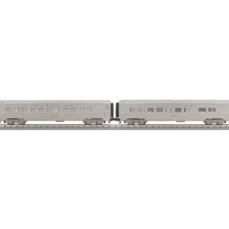 This is MTH 30-67651 O-27 60′ Streamline Sleeper/Diner, SF. 2-car 60′ streamlined ABS sleeper/diner – Santa Fe. Sleeper – Havasu, diner – Toreva. RailKing Passenger Cars are available in the popular 60′ Streamlined and Madison style bodies. Configured in 4-car, 2-car and single-car configurations, each type features car interior detail, overhead interior lighting, end-of-car diaphragms and intricate under-car detail. All configurations are mounted atop die-cast metal 4 or 6-wheel trucks with operating metal couplers, metal wheels and metal axles.