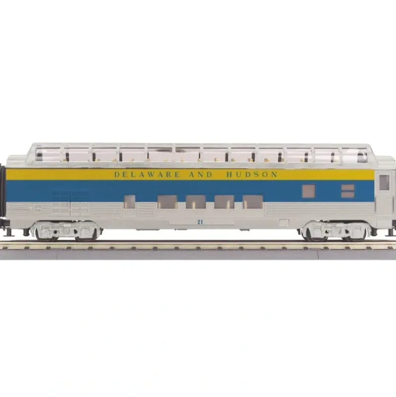 This is a MTH 30-67854 O D&H 60′ Streamlined Full Dome. Durable ABS Intricately Detailed Bodies, Metal Wheels and Axles, Overhead Interior Lighting, Die-Cast 4-Wheel Trucks, Operating Die-Cast Metal Couplers, Colorful, Attractive Paint Schemes, End-of-Car Diaphragms, Fast-Angle Wheel Sets, Needle-Point Axles, Detailed Car Interiors, Unit Measures:16 11/16 x 2 1/2 x 3 13/16, Operates On O-31 Curves.