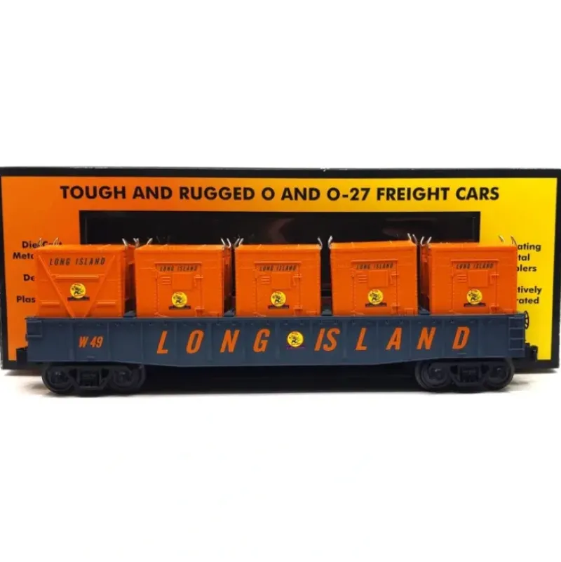 This is a MTH 30-72143 O LIRR Gondola w/LCL Containers. Intricately Detailed Durable ABS Body, Metal Wheels and Axles, Die-Cast 4-Wheel Trucks, Operating Die-Cast Metal Couplers, Colorful, Attractive Paint Schemes, Decorative Brake Wheels, Fast-Angle Wheel Sets, Needle-Point Axles, (3) Removable LCL Containers, Unit Measures:11 7/8 x 2 3/16 x 1 11/16, Operates On O-27 Curves.