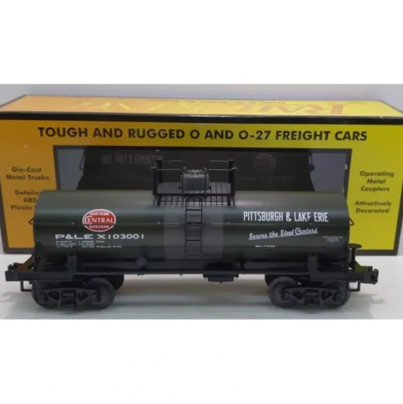 This is MTH 30-73360 O P&LE Tank Car. Tank car, Pittsburgh & Lake Erie. Number: X103001. High quality, traditionally sized RailKing Freight Cars provide detailed bodies and colorful paint schemes for the O Gauge railroader. MTH makes an enormous variety of RailKing Freight Cars, including many different car types and roadnames. No matter what era or part of the country you are modeling, RailKing is sure to have something for you.