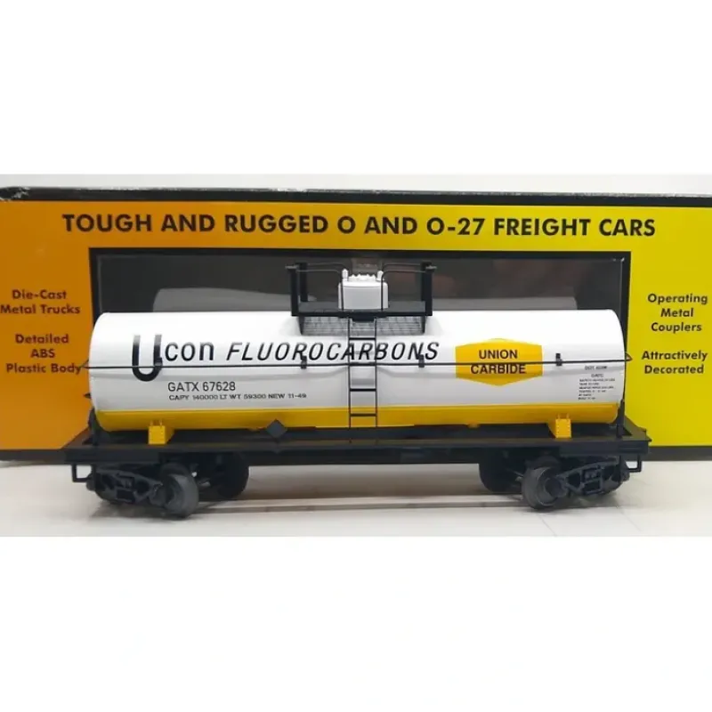 The tank car was relatively uncommon until the 1870s, when the nascent petroleum industry ordered large quantities of metal tanks carried on wooden car bodies. By the early 1900s, a standard design had evolved that lasted throughout the steam and early diesel eras: an 8,000-11,000 gallon metal tank perched on a metal flatcar-like underframe. The one big change during that time was the transition from riveted to welded construction beginning in the late 1930s. Car builders introduced X-ray inspection of welds to ensure safety, as well as giant annealing ovens that could heat-treat assembled tanks to relieve joint stress. Welded tanks were stronger, less susceptible to rust and corrosion, and less likely to rupture in the event of a wreck. Our model represents a typical all-welded, insulated tank car built in the late 1940s or 1950s. A layer of insulation protected cargos that were sensitive to temperature extremes, and some such cars also had heating coils under their outer layer. Our model also features a safety platform around the dome insulation and safety platforms being features commonly found on cars used in the chemical industry. High quality, traditionally sized RailKing Freight Cars provide detailed bodies and colorful paint schemes for the O Gauge railroader. MTH makes an enormous variety of RailKing Freight Cars, including many different car types and roadnames. No matter what era or part of the country you are modeling, RailKing is sure to have something for you