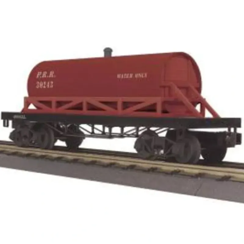 This is MTH 30-73408 Pennsylvania Railroad 19th Century Wooden Tank Car. Wooden tank car (19th Century), Pennsylvania. Car number: 30243. The tank car was relatively uncommon until the 1870s, when the nascent petroleum industry ordered large quantities of metal tanks carried on wooden car bodies. Before that, however, all-wood tank cars brought drinking and locomotive water to arid areas, supplying construction crews for the transcontinental railway and settlements along the Virginia & Truckee Railroad.