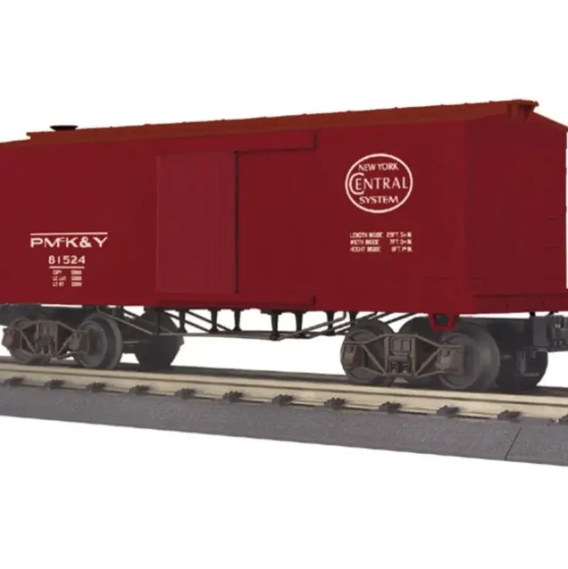 Here is a MTH 30-74452 O New York Central 19th Century 34′ Boxcar #81524. High quality, traditionally sized RailKing Freight Cars provide detailed bodies and colorful paint schemes for the O Gauge railroader. MTH makes an enormous variety of RailKing Freight Cars, including many different car types and roadnames. No matter what era or part of the country you are modeling, RailKing is sure to have something for you.