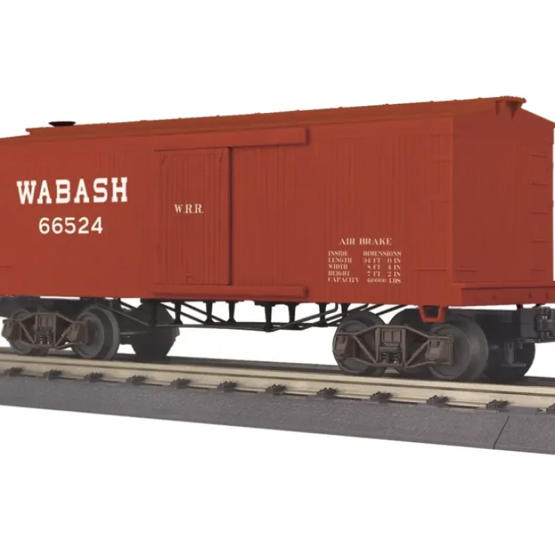 This is a MTH 30-74788 O Wabash RailKing 34′ Box Car (19th Century) #66524. Product Features:Intricately Detailed Durable ABS Body, Metal Wheels and Axles, Die-Cast 4-Wheel Trucks, Operating Die-Cast Metal Couplers, Colorful, Attractive Paint Schemes, Separate Metal Handrails, Fast-Angle Wheel Sets, Needle-Point Axles, Sliding Car Doors, Unit Measures:9 11/16 x 2 7/16 x 3 7/16, Operates On O-27 Curves.