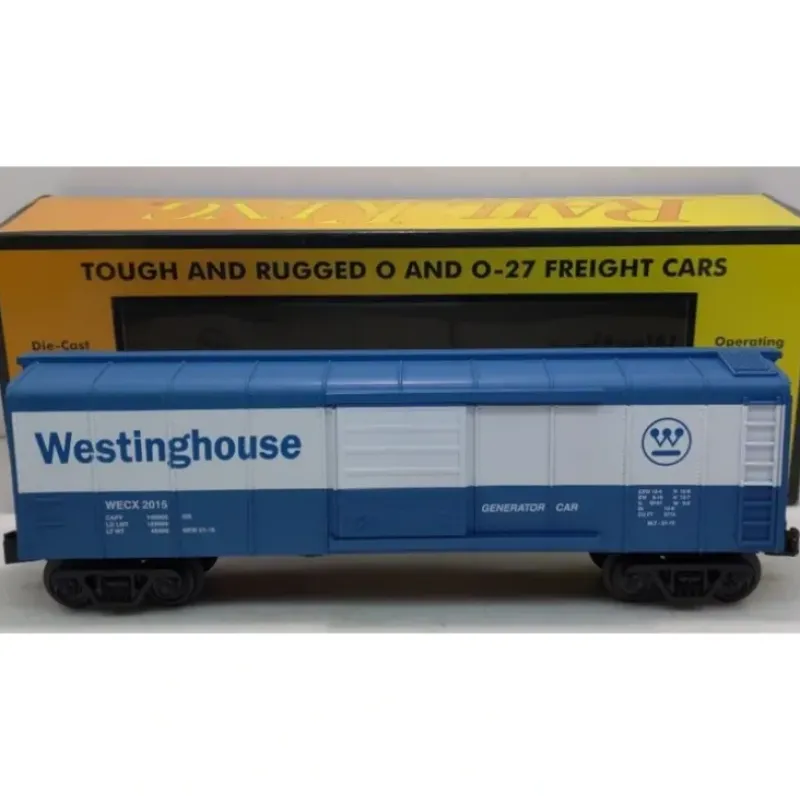This is a MTH 30-74802 O Westinghouse Round Roof Boxcar w/Generator. Intricately Detailed Durable ABS Body, Metal Wheels and Axles, Die-Cast 4-Wheel Trucks, Operating Die-Cast Metal Couplers, Colorful, Attractive Paint Schemes, Fast-Angle Wheel Sets, Needle-Point Axles, Unit Measures:11 5/8 x 2 1/2 x 3 7/16, Operates On O-27 Curves.