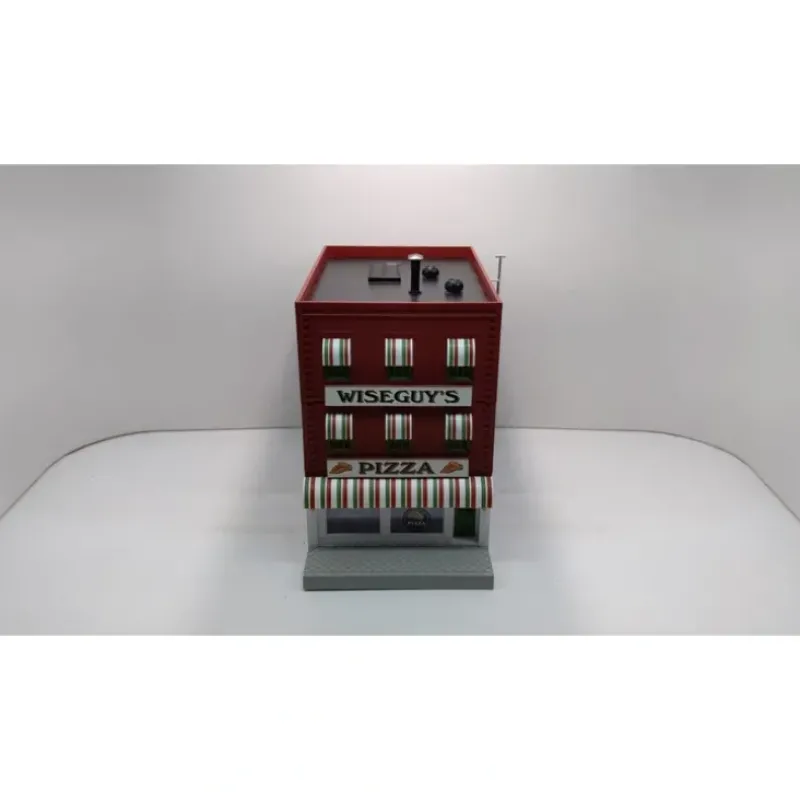 This is MTH 30-90438 O Wiseguy’s Pizza 3Story City Building w/Fire Escape & Blinking Sign. M.T.H. Electric Trains offers a variety of RailTownT buildings to help you create whatever kind of atmosphere you desire; rural or urban, nostalgic or modern. Operating buildings transfer your layout’s action from trains to structures adding fun and excitement to the entire pike. RailTown buildings are a perfect addition on any O Gauge layout, as each is sized for use with all O Gauge locomotives and rolling stock regardless of manufacturer.