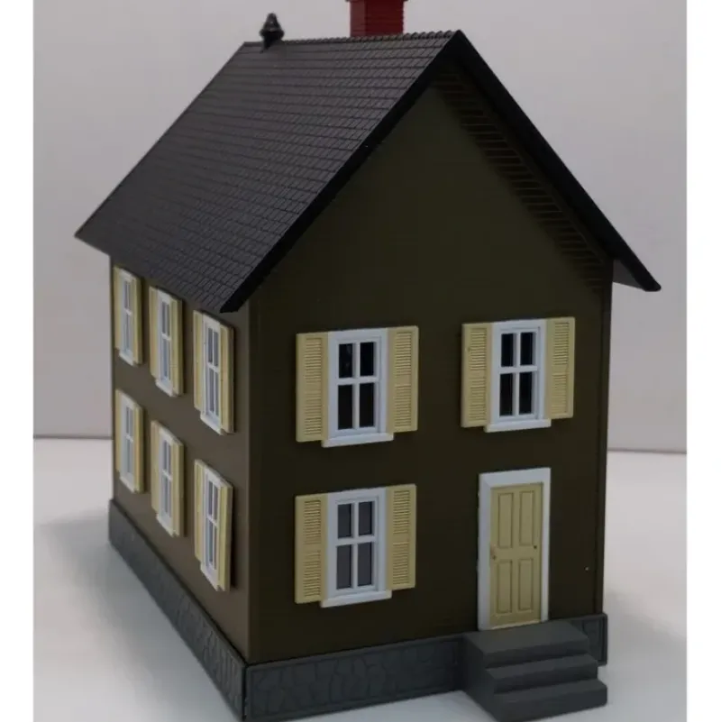Here is a Rail King MTH 30-9044 Brown Row House with cream shutters. A nice building for any layout.