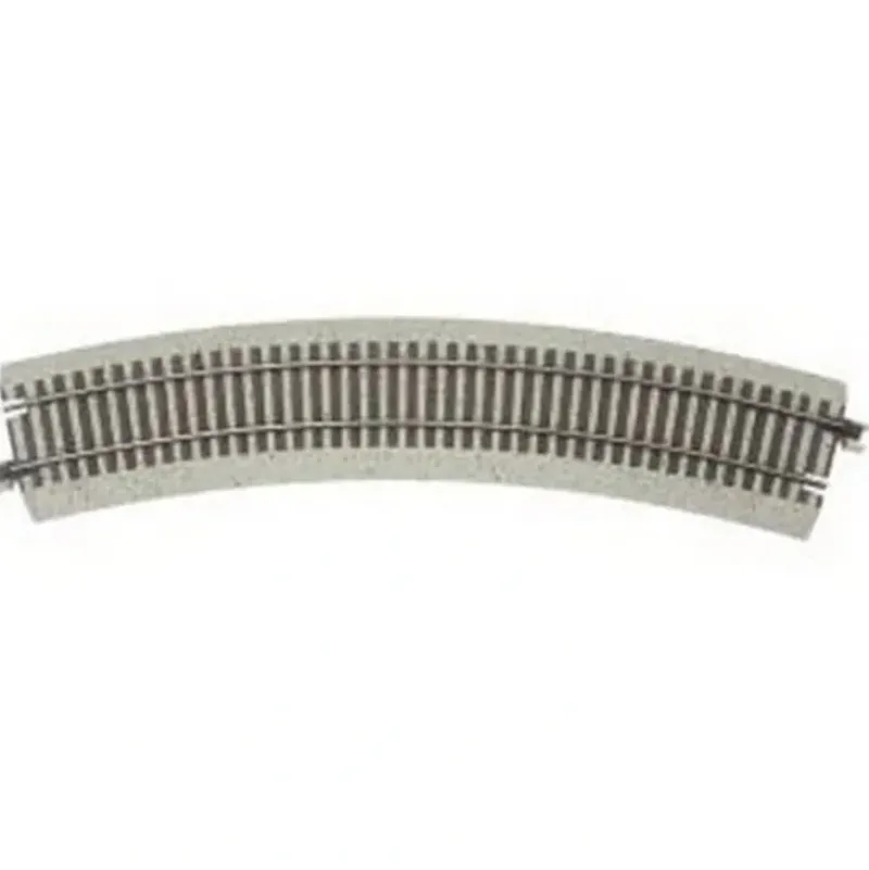 Features ABS Molded Integrated Ballasted Roadbed 155# Code 125 Solid Nickel-Silver T Section Rails Molded Wood Grain Tie Details Positive Interlocking Track Connections Each Package Contains (6) Sections of Track Unit Measures:25 Radius, 30 Degree 2 Packs (12 sections) are required to make a full 50″ Diamter Circle.