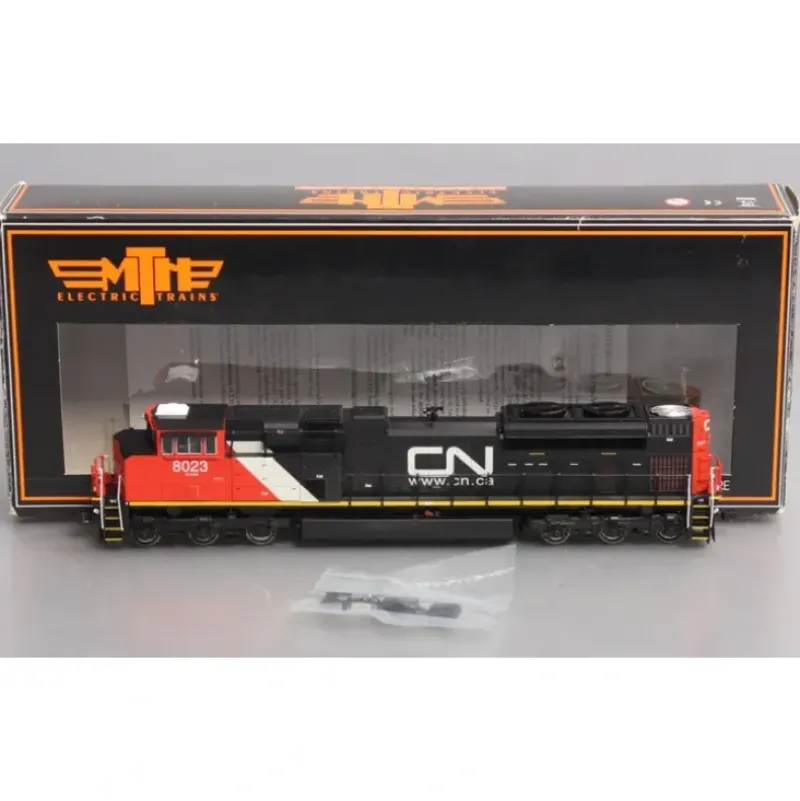 Here is an MTH 80-2028-1 HO Scale Canadian National SD70M-2 Diesel Engine w/PS3 #8023. This locomotive features a plastic body construction with plastic trucks, metal wheels, a motor, ProtoSound 3.0, lighting, and operating knuckle couplers.