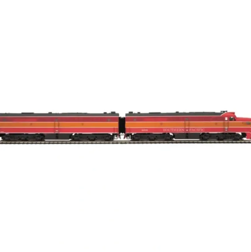 This is MTH 80-2049-1 Southern Pacific Alco PA A/B Set With Proto-Sound 3.0. Daylight. A unit no. 6005. B unit no. 5910. The PA was Alco’s glamour girl. While Electro-Motive’s E-units easily outsold Alco’s passenger engine, the PA is widely regarded as the most beautiful first-generation diesel – period. Perhaps no other locomotive looked so right at the head of the streamlined trains of the late forties and fifties that were the last hurrah of American long-distance passenger service. The 294 PA’s and cabless PB’s built between 1946 and 1953 powered some of America’s most famous name trains, from the Southern Pacific’s Daylight to the Pennsylvania’s Broadway Limited. In recognition of its beauty, some fans refer to the PA as an honorary steam locomotive.