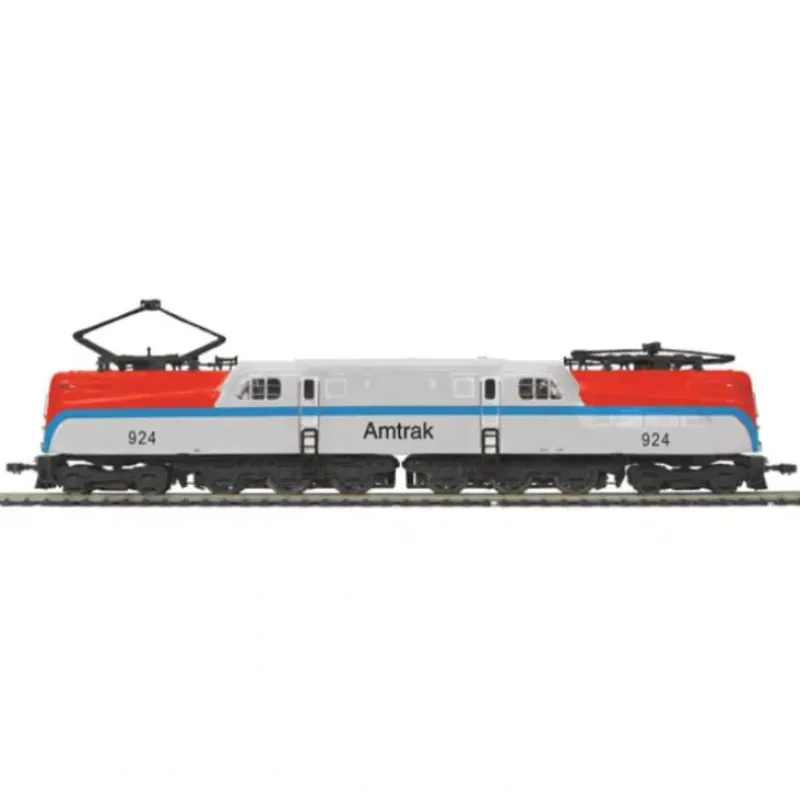 This is MTH80-2152-1 GG-1 Elect PS3.0 AMTK#924. GG-1 electric with Proto-Sound 3.0, Amtrak. Cab number: 924. For more than two decades, the Pennsylvania Railroad experimented with locomotive designs in search of a high-speed, mainline passenger electric. That search ended in 1934 with the GG1, a cooperative effort by the PRR, Baldwin, Westinghouse, and General Electric, based largely on neighbor New Haven’s successful EP3 juice jack. Industrial designer Raymond Loewy cleaned up the original riveted body to create a design that looked contemporary for half a century.
