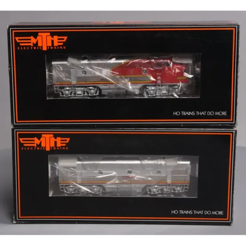 Here is an MTH 80-2185-1 HO Santa Fe F-3 A/B Diesel Locomotive Set #26 with PS 3.0. Features Intricately Detailed ABS Bodies Metal Chassis Moveable Roof Fans Metal Body Side Grilles (2) Engineer Cab Figures In Each A Unit Authentic Paint Scheme Metal Wheels and Axles RP25 Metal Wheels (2) Operating Kadee Compatible Remote Controlled Proto-Couplers (2) #158 Scale Kadee Whisker Couplers Prototypical Rule 17 Lighting Directionally Controlled Constant Voltage LED Headlight Lighted Cab Interior Illuminated Number Boards Lighted Marker Lights Operating MARS Light Powerful 5-Pole Precision Flywheel Equipped Skew-Wound Balanced Motor Locomotive Speed Control In Scale MPH Increments Operates On Code 70, 83 and 100 Track 1:87 Scale Proportions Proto-Sound 3.0 equipped locomotives can be controlled in command mode with any DCC compliant command control system. While the user won’t have access to all of the incredible features of Proto-Sound 3.0, independent control over the locomotive is possible. This means you can continue to use your existing DCC controller to independently control your other DCC equipped locomotives in addition to your Proto-Sound 3.0 locomotive on the same track at the same time. When using a DCC controller, the following Proto-Sound 3.0 locomotive features are accessible: F0 Headlight F1 Bell F2 Whistle/Horn F3 Start Up/Shut Down F4 Rear Coupler F5 Front Coupler F6 Engine Sounds On/Off F7 Sound Volume F8 Ditch Lights Auto/On/Off F9 Forward Signal F10 Reverse Signal F11 Grade Crossing Signal F12 Cab Light On/Off F13 Extended Start Up F14 Extended Shut Down F15 Rev Up F16 Rev Down F17 Coupler Slack Sound F18 Coupler Close F19 One-Shot Doppler F20 Feature Reset F21 Idle Sequence 1 F22 Idle Sequence 2 F23 Idle Sequence 3 F24 Ditch Lights Auto/On/Off F25 Brakes Auto/Off F26 Cab Chatter Auto/Off F27 Clickety-Clack Auto/Off F28 Coupler Slack Sound Proto-Sound 3.0 With The Digital Command System Featuring: Passenger Station Proto-Effects Unit Measures:13 7/8 x 1 7/16 x 2 3/8 Operates On 18 Radius Curves